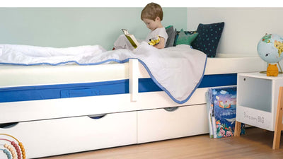 Si vous êtes à la recherche d'un matelas pour votre enfant ou votre ado, nous ne pouvons que vous conseillez notre matelas Melli-Mello ! Intégrant 2 faces (une face en mémoire de forme et une face en mousse polyuréthane ferme), ce matelas réversible est un must pour les plus jeunes et à le potentiel d'accompagner votre enfant durant toute sa croissance ! En effet, la face bleue, plus ferme, est idéale jusqu'à 3 ans et répond aux besoins du corps fragiles des plus petits. La face blanche, en mémoire de forme, peut quant à elle être adoptée dès l'âge de 3 ans lorsque l'ossature s'est suffisamment solidifiée. À cet âge, la mémoire de forme, ne présente aucun risque pour votre enfant en matière de développement de troubles posturaux notamment et peut être utilisée librement et sans aucune réserve !